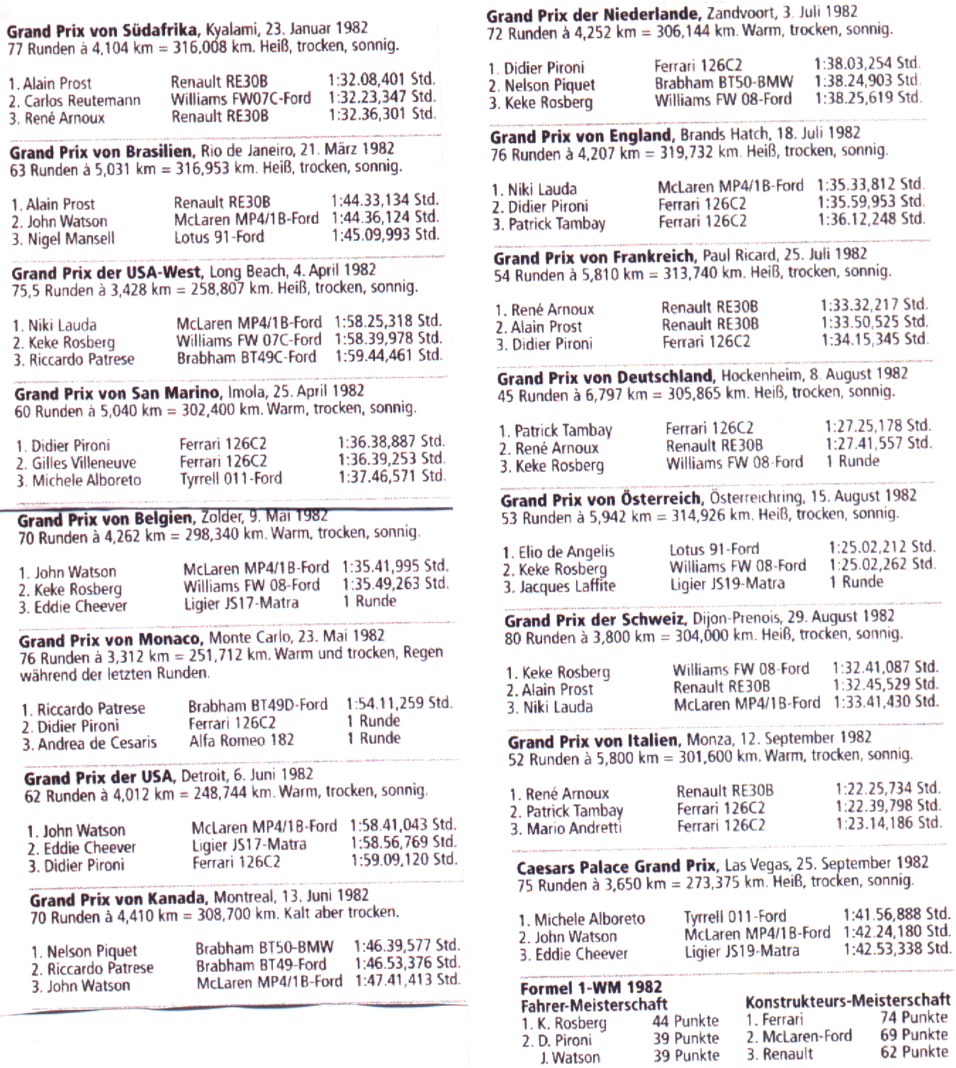 Weltmeister 1982 ist Keke Rosberg!!!